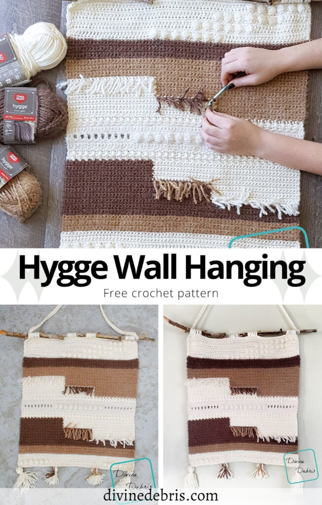 To attach your stick, you can do a row of single crochets like I did in my Be King Wall-Hanging or you can just cut a length of yarn and sew the stick to the first row in a few different spots. I chose the latter because I thought it helped give it a fun look and reinforce the hygge texture/style.