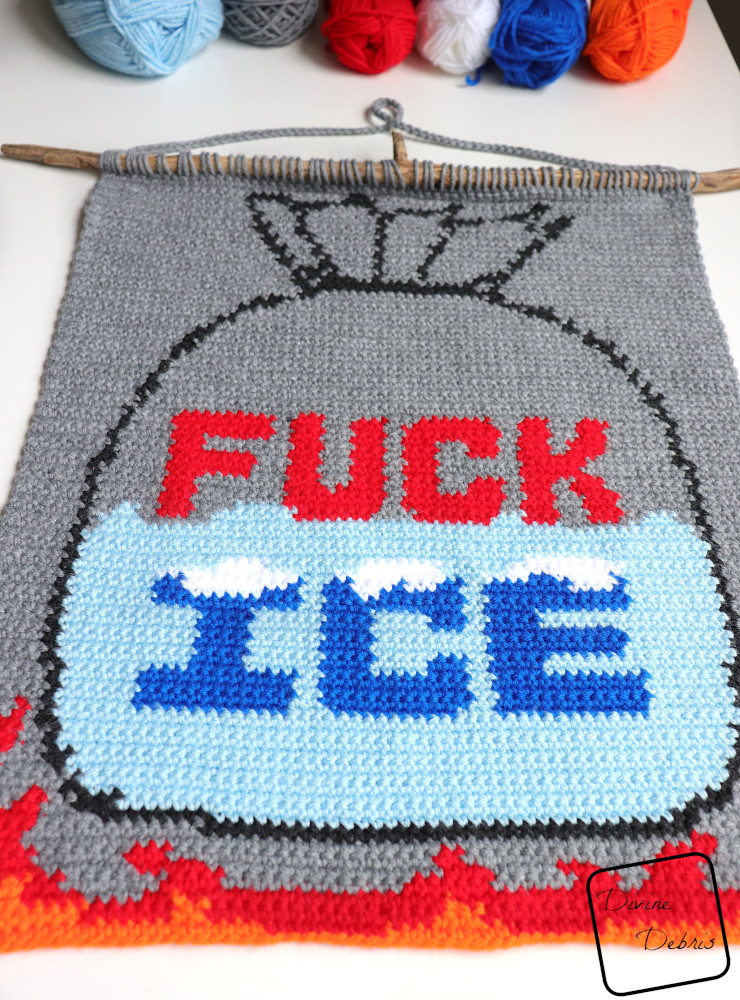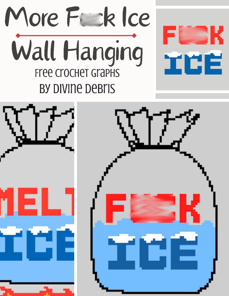 Like the Dumpster Fire Wall Hanging release earlier this month, I had too many ideas to keep it to just 1 pattern so I released the More Dumpster Fire Wall Hangings. So, in addition to the Fuck Ice Wall Hanging, here’s the More Fuck Ice Wall Hangings.